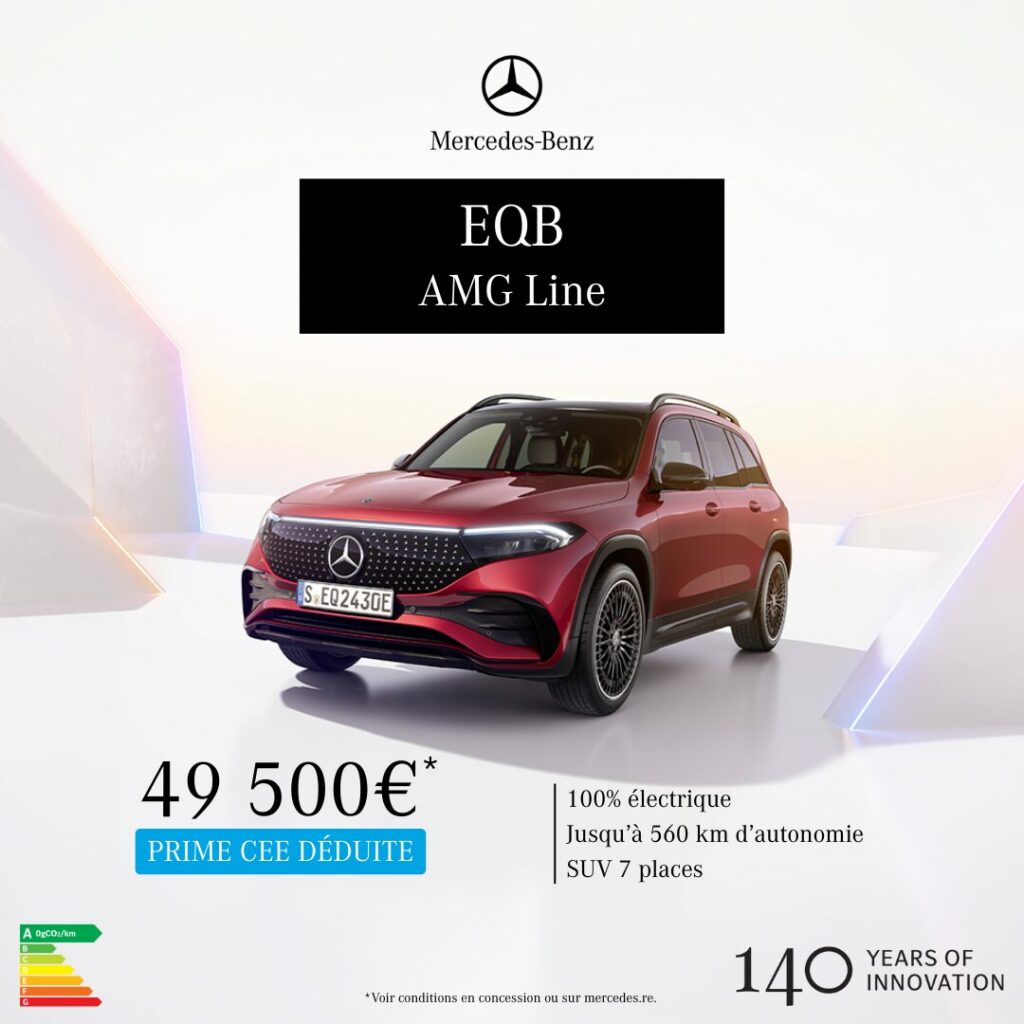 *Tarif exceptionnel d’un EQB Edition 250+ après déduction de la prime Engie de 3000€, pour la valorisation des opérations au titre du dispositif CEE et pour l’achat ou la location de 24 mois minimum d’une EQA ou EQB 250+ Edition éligible à l’éco score. Offre non cumulable, réservée aux particuliers, valable dans la limite des stocks disponibles jusqu’au 28/02/2026.